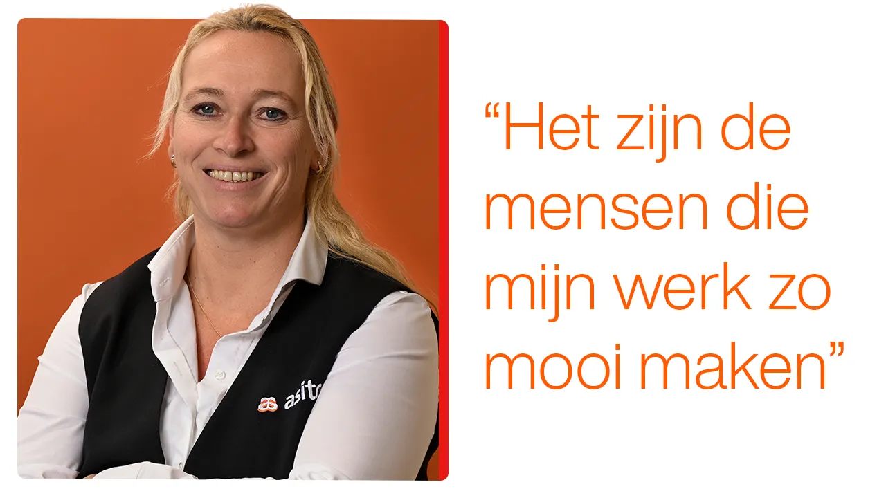 Als ze Asito in een paar woorden moet omschrijven, kiest ze voor: goed werkgeverschap en ontwikkelmogelijkheden. En zou ze anderen aanraden om bij Asito te komen werken? “Ja, absoluut. Ik zit hier al 25 jaar met plezier. Dat zegt genoeg, toch?”